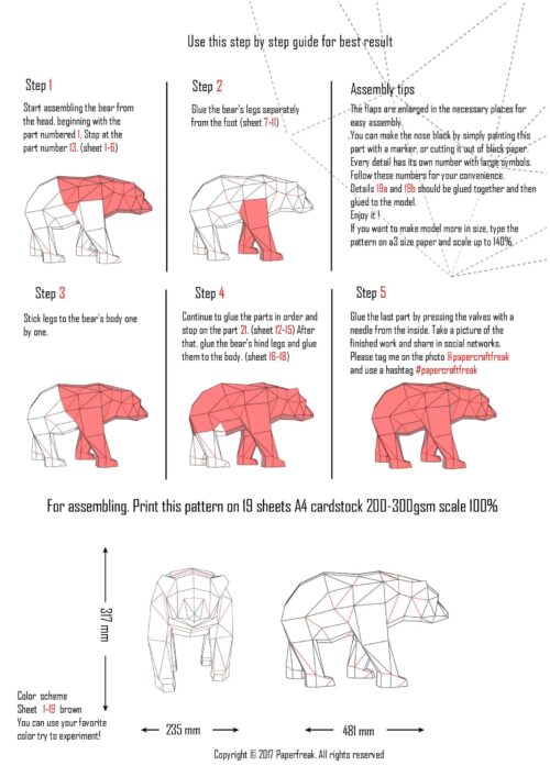 Caractéristiques techniques du papercraft ours en marche en origami 3D