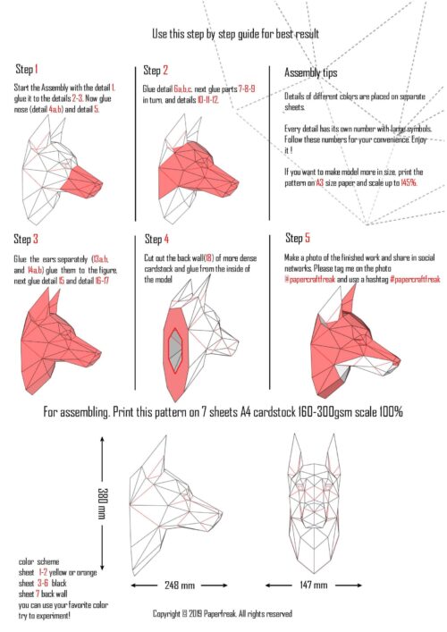 N’attendez plus pour ajouter cette pièce unique à votre collection ou offrir un cadeau original à vos proches. Le papercraft tête de doberman en origami 3D est parfait pour les amateurs de loisirs créatifs, les décorateurs et même les éducateurs cherchant des activités pédagogiques. Commandez dès aujourd’hui et plongez dans l’univers fascinant du papercraft !